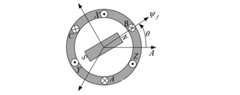 取永磁磁极励磁磁场的基波分量为ψf,其与A相轴线之间的夹角用θ表示,定子绕组Y形连接,转子以角速度ω逆时针旋转。
