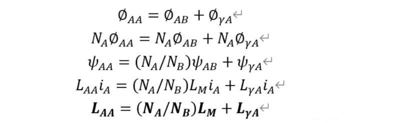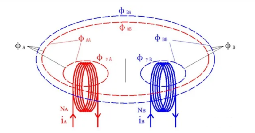 φAB为A对B的互感磁通;φγA为线圈A的漏磁通;